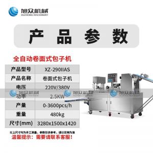 290IIAS卷面式包子機,可生產(chǎn)各種不同餡料的包子、各式包餡食品,如豆沙包、南瓜餅、肉包、小籠包、水晶包等幾十種包餡制品。適用于個體戶、食品廠、學校等單位食堂??蓾M足不同客戶群體。免費提供工藝技術。