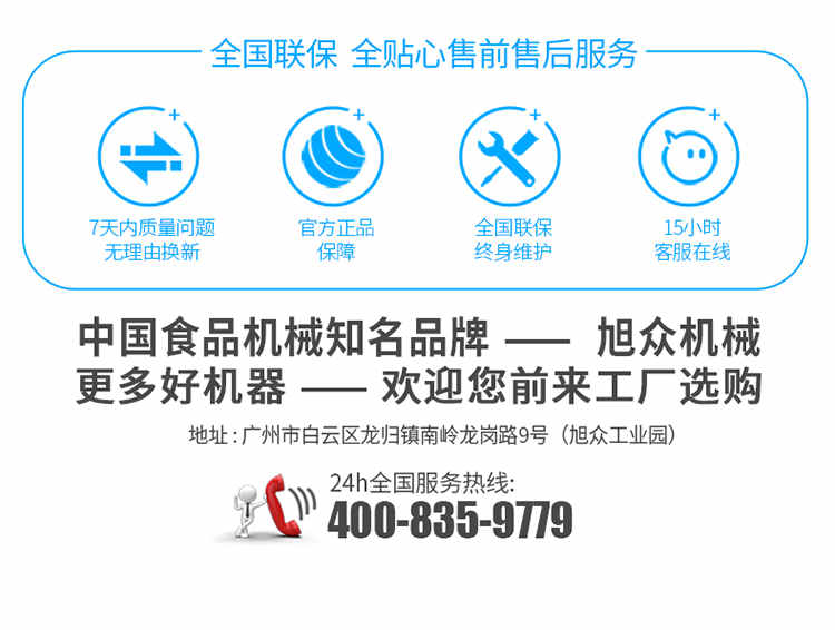 廣州旭眾食品機械有限公司是一家集科研開發(fā),生產(chǎn)設(shè)計,營銷服務(wù)為一體的現(xiàn)代化生產(chǎn)企業(yè)。現(xiàn)代化生產(chǎn)車間,精湛制造技術(shù),所產(chǎn)機械歷經(jīng)市場重重考驗,不斷贏得海內(nèi)外客戶的贊譽。
