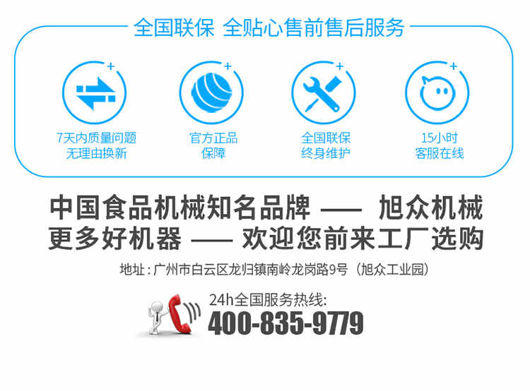 廣州旭眾食品機(jī)械有限公司是一家集科研開發(fā),生產(chǎn)設(shè)計(jì),營銷服務(wù)為一體的現(xiàn)代化生產(chǎn)企業(yè)?,F(xiàn)代化生產(chǎn)車間,精湛制造技術(shù),所產(chǎn)機(jī)械歷經(jīng)市場重重考驗(yàn),不斷贏得海內(nèi)外客戶的贊譽(yù)。