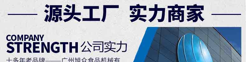 廣州旭眾食品機械有限公司是一家集科研開發(fā),生產(chǎn)設計,營銷服務為一體的現(xiàn)代化生產(chǎn)企業(yè)?,F(xiàn)代化生產(chǎn)車間,精湛制造技術,所產(chǎn)機械歷經(jīng)市場重重考驗,不斷贏得海內(nèi)外客戶的贊譽。