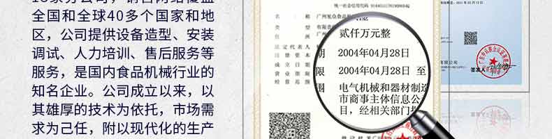 廣州旭眾食品機械有限公司是一家集科研開發(fā),生產(chǎn)設(shè)計,營銷服務(wù)為一體的現(xiàn)代化生產(chǎn)企業(yè)?,F(xiàn)代化生產(chǎn)車間,精湛制造技術(shù),所產(chǎn)機械歷經(jīng)市場重重考驗,不斷贏得海內(nèi)外客戶的贊譽。
