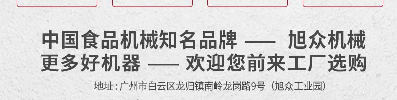 廣州旭眾食品機(jī)械有限公司是一家集科研開發(fā),生產(chǎn)設(shè)計(jì),營(yíng)銷服務(wù)為一體的現(xiàn)代化生產(chǎn)企業(yè)?,F(xiàn)代化生產(chǎn)車間,精湛制造技術(shù),所產(chǎn)機(jī)械歷經(jīng)市場(chǎng)重重考驗(yàn),不斷贏得海內(nèi)外客戶的贊譽(yù)。